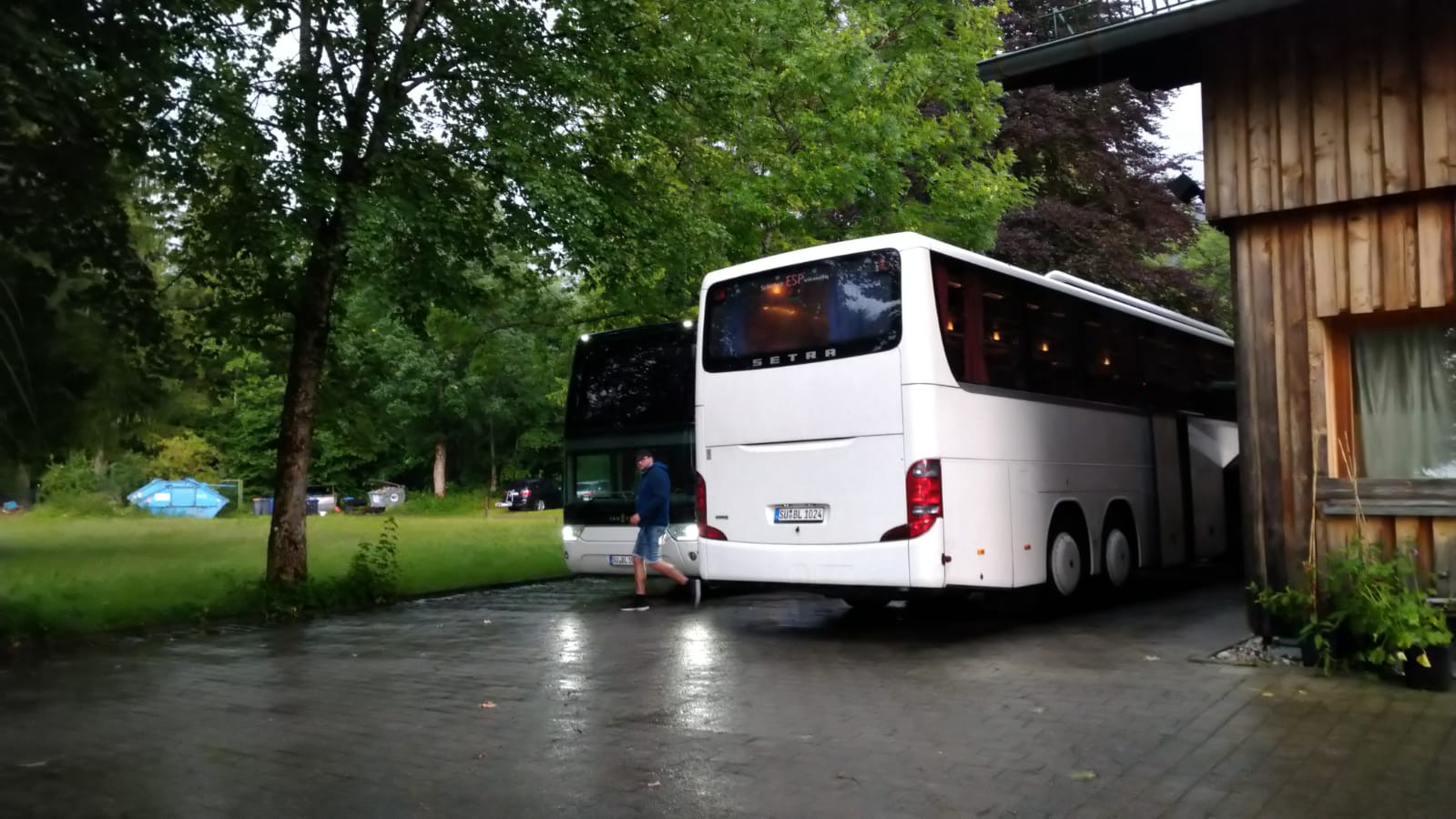 Die Busse unserer Teilnehmenden sind gegen 20:30 angekommen. Leider hat es bei der Ankunft geregnet.